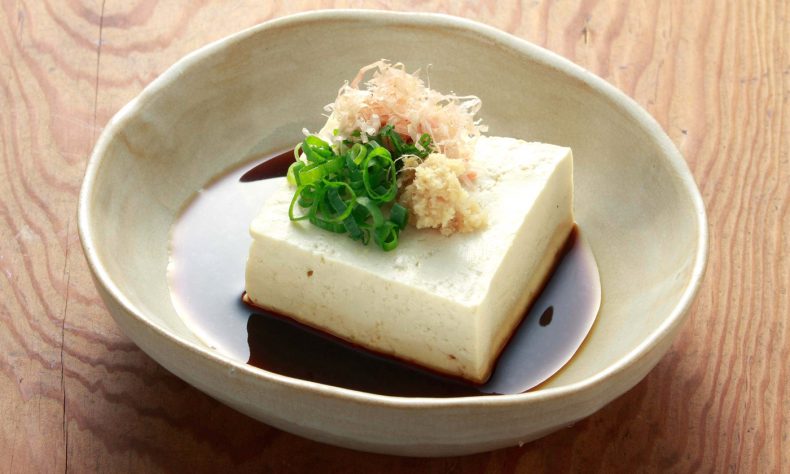 1、将豆腐切成薄的三角片状,留以备用。